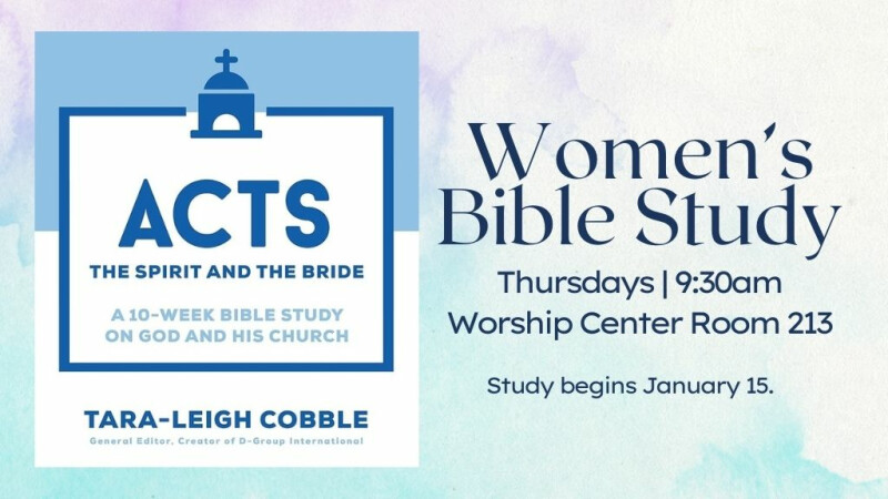 Starting Thursday, January 15 the group will begin Acts: The Spirit and the Bride by Tara-Leigh Cobble.