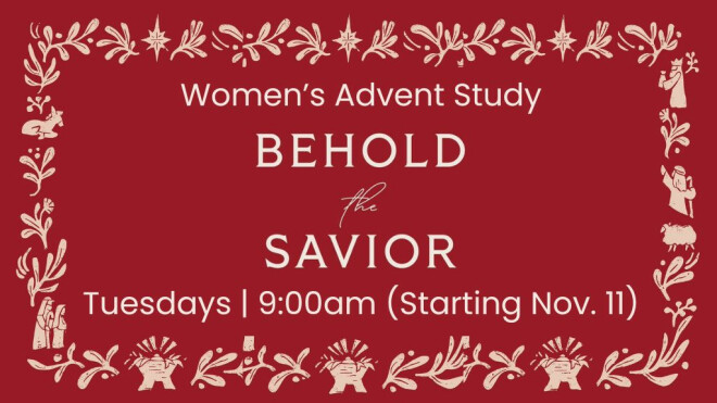 Book: Behold the Savior - Treasuring the Story of Christmas When: Tuesdays 9am-10:30am starting November 11. Where: Worship Center Room 213 Facilitator: Kim McAlhaney Book...